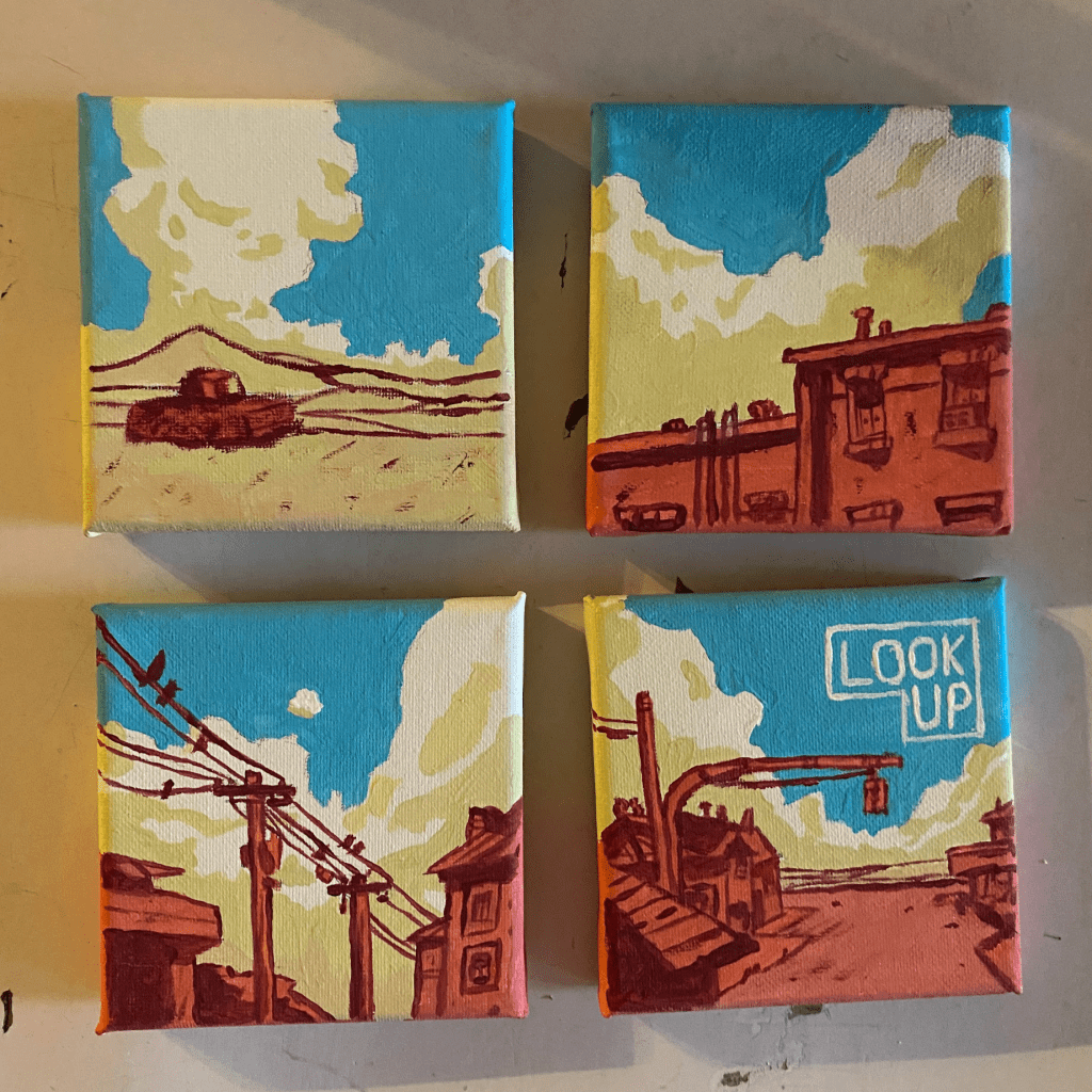 A piece of art I had wanted to make ever since getting these small canvases was a recreation of the cover of Look Up by the Altogether, my favorite piece of music from one of my favorite bands. (Summer 2023)
