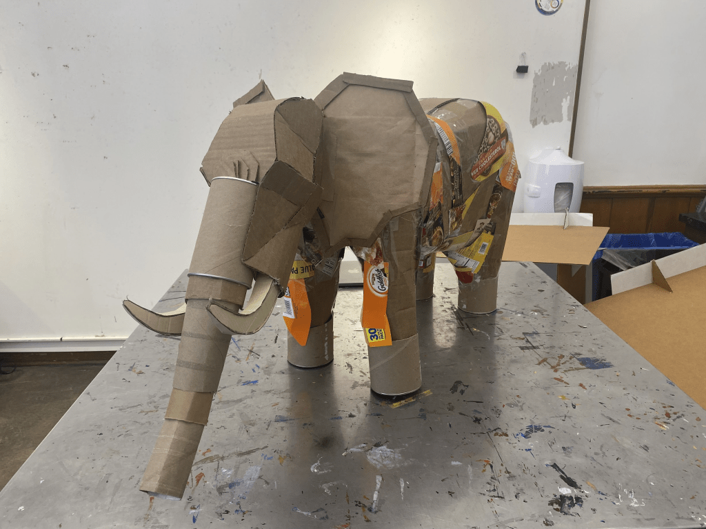 I have a life long adoration for elephants and a lot of experience working with cardboard, so for my sculpture class in which we had to make a piece out of cardboard, I knew what I had to do.